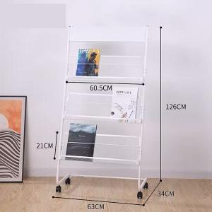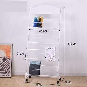 FAX88 四層平頂落地可移動白色雜誌架63CM闊 13840