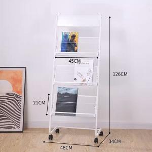 FAX88 四層平頂落地可移動白色雜誌架48CM闊 13845