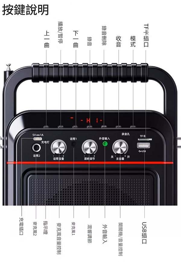 5.25吋喇叭,電量4000mAh,支持有線/無線話筒