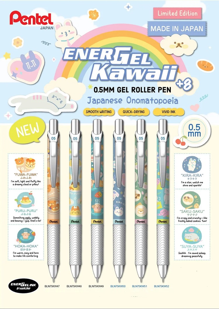 【限定】Pentel Energel 0.5 按掣啫喱筆 KAWAII 8th 可愛疊字系列 BLN75KW 藍芯