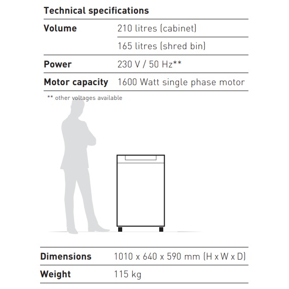 -Waste Bin Volume: 廢紙膠箱容量: 165 liters
