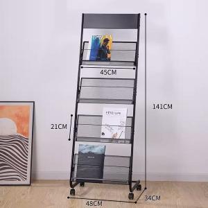FAX88 四層平頂落地可移動黑色雜誌架48CM闊 13843