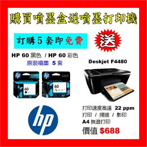買噴墨送HP Deskjet F4480打印機優惠 - HP 60黑色   60彩色  原裝  Ink 5套