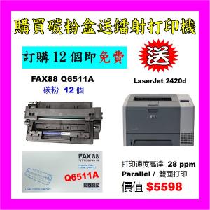 買碳粉送 HP 2420d 打印機優惠 - FAX88 Q6511A 碳粉 12個