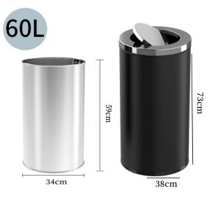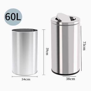 AutoMax 不銹鋼銀色圓形垃圾桶 60L 翻蓋式 商場垃圾桶 酒店垃圾桶