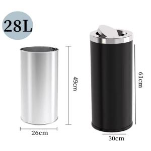 AutoMax 不銹鋼黑色圓形垃圾桶 28L 翻蓋式 商場垃圾桶 酒店垃圾桶 #14789
