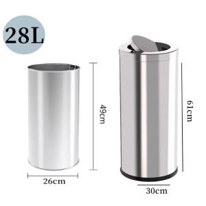 AutoMax 不銹鋼銀色圓形垃圾桶 28L 翻蓋式 商場垃圾桶 酒店垃圾桶 #14790