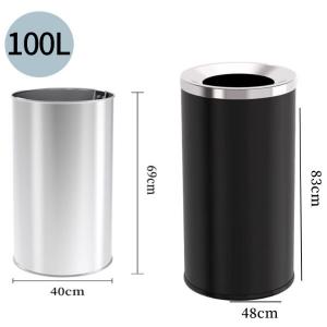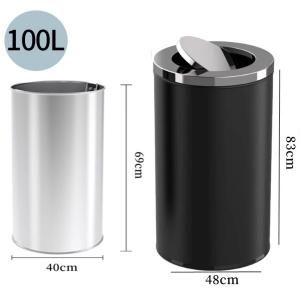 AutoMax 不銹鋼黑色圓形垃圾桶 100L 翻蓋式 商場垃圾桶 酒店垃圾桶 #14791