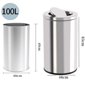 AutoMax 不銹鋼銀色圓形垃圾桶 100L 翻蓋式 商場垃圾桶 酒店垃圾桶 #14792