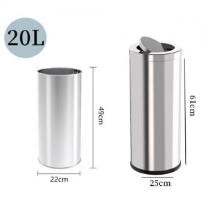 AutoMax 不銹鋼銀色圓形垃圾桶 20L 翻蓋式 商場垃圾桶 酒店垃圾桶 #15136