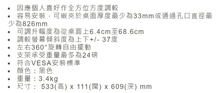 Fellowes FW8041601 專業可調較單臂螢幕支架