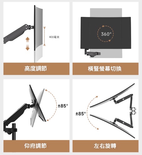 Automax 17-32吋顯示器 雙屏移動落地支架附鍵盤托 氣壓升降 橫豎屏切換