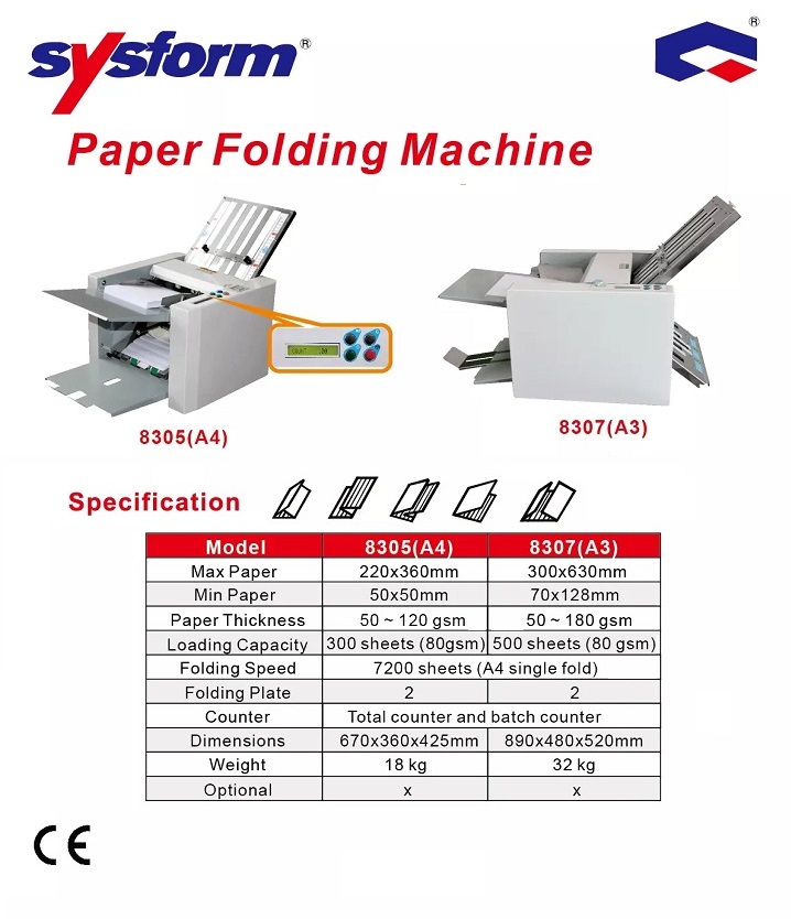 温馨提示:因廠家更改商品包裝、產地、附配件,優化模具等不作提前通知,且每位咨詢者購買、提問時間等不同。為此,客服給到的回覆僅對提問者3天内有效,其他網友僅供參考!給您带来的不便還請諒解,謝謝!SYSFORM 8307A3 摺紙機